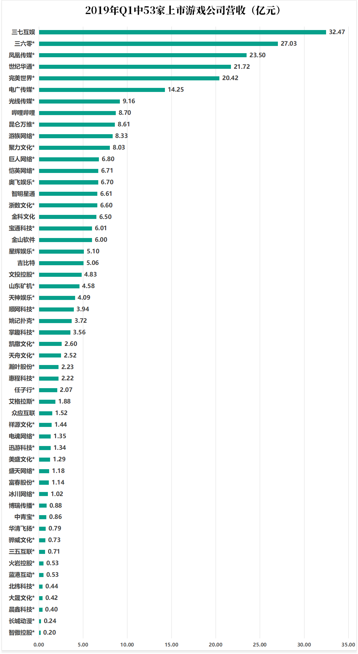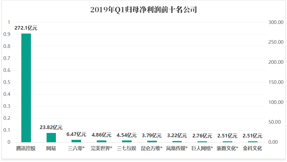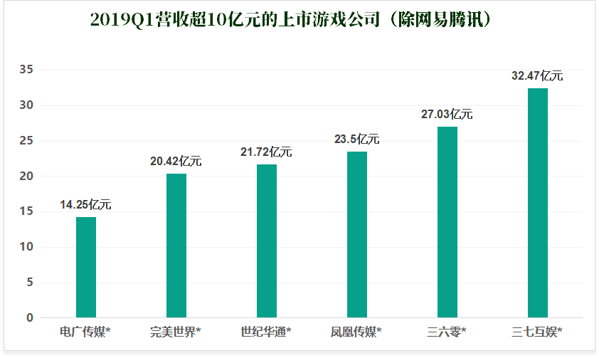 一、2019年Q1营收超10亿元公司共六家,三七互娱紧追腾讯网易