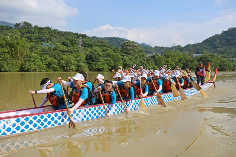 当天上午,党员、员工代表在广州网易志愿者服务队的带领下到达从化文轩苑,虽然现场突降了一场暴雨,但并没有浇灭大家参加活动的热情。在活动开场仪式上,主持人向现场的领导、党员、员工代表介绍了本次活动的组织背景和目的,并号召大家继续参加公司党委后续举办的公益活动。同时,主持人代表公司党委对公司各部门领导、党员、员工的爱心之举表示感谢。尽管当天天气状况不佳,对于第一次参加龙舟竞技赛,每个队伍的成员确展现了斗志激昂的精神面貌。在教练带领下,一轮陆地接力划桨热身之后,我们的队员已经做好下水准备了。