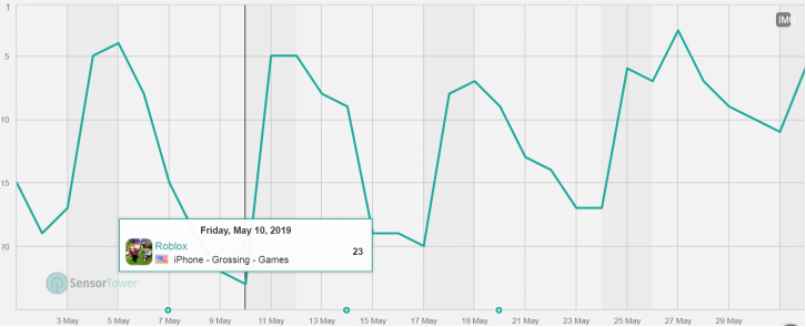 《Roblox》5月美国iPhone畅销排行趋势
