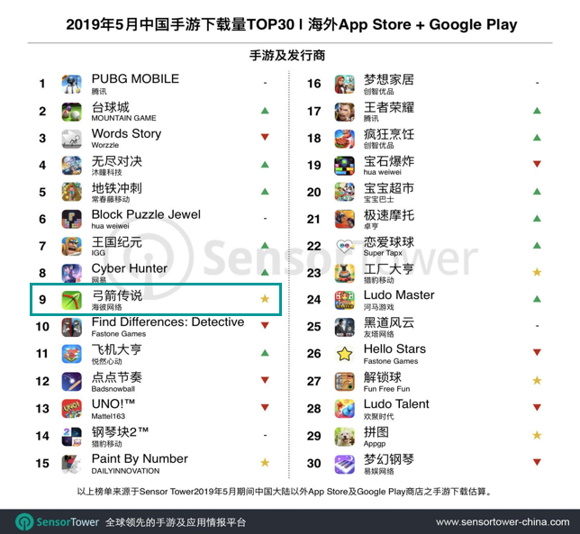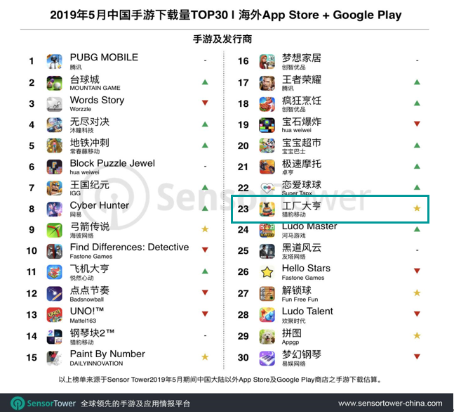 和往常一样,数据分析公司Sensor Tower发布了5月手游出海报告,此次也盘点了中国手游在海外市场下载量TOP30产品。从这份榜单中,我们也能对当下中国手游的出海进程略窥一二。