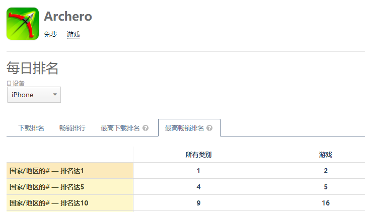 除了吸量,《弓箭传说》的吸金能力也出乎很多人的意料,截至目前,《弓箭传说》最高在App Store拿下16个市场的畅销榜TOP10。这款游戏不仅通过广告变现,其应用内购收入更是高达490万美元,其中韩国玩家贡献29%的海外总收入,美国和台湾玩家分别贡献19%和10%。