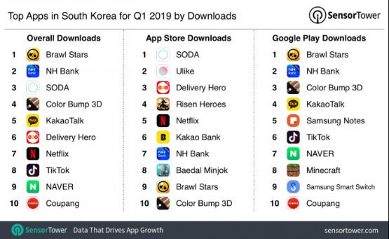 此外,2019年Q1期间,《荒野乱斗》在韩国市场的下载成绩亦表现出色。数据显示,2019年第一季度,《荒野乱斗》在韩国地区的下载量超过400万次,荣登该地区综合应用下载榜TOP1。平台方面,该作在Google Play商店的表现要远超App Store,分别排在第一和第九。