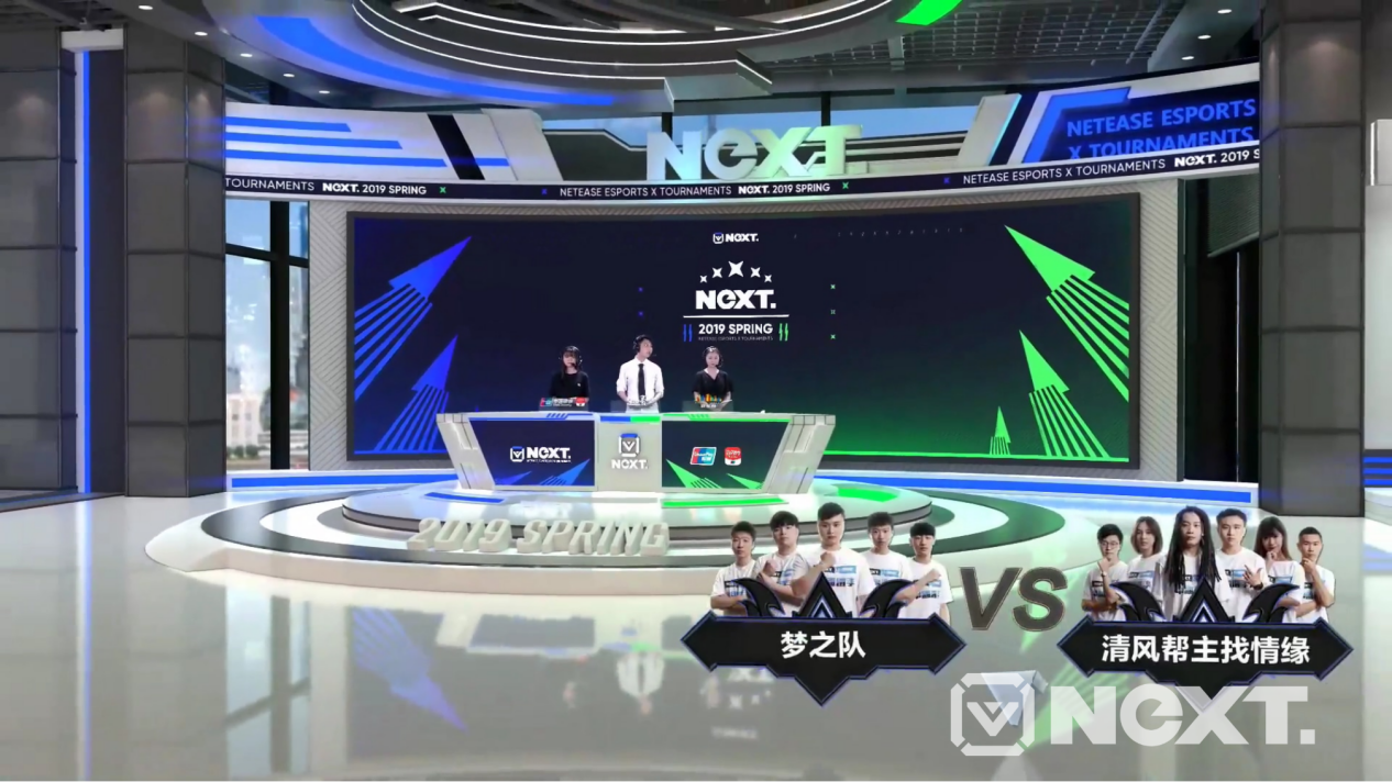 本届春季赛NeXT直播技术团队完善并已形成一体化、整合性的线上线下赛事技术方案。线下赛事具备10级切换台,50路复杂信号,20个以上特效窗口,12讯选手内部通联以及POV摄像头的行业顶配解决方案;视觉呈现上NeXT直播技术团队,首创3D虚拟演播厅布景结合产品虚拟角色播报,极大丰富了赛事内容呈现方式。