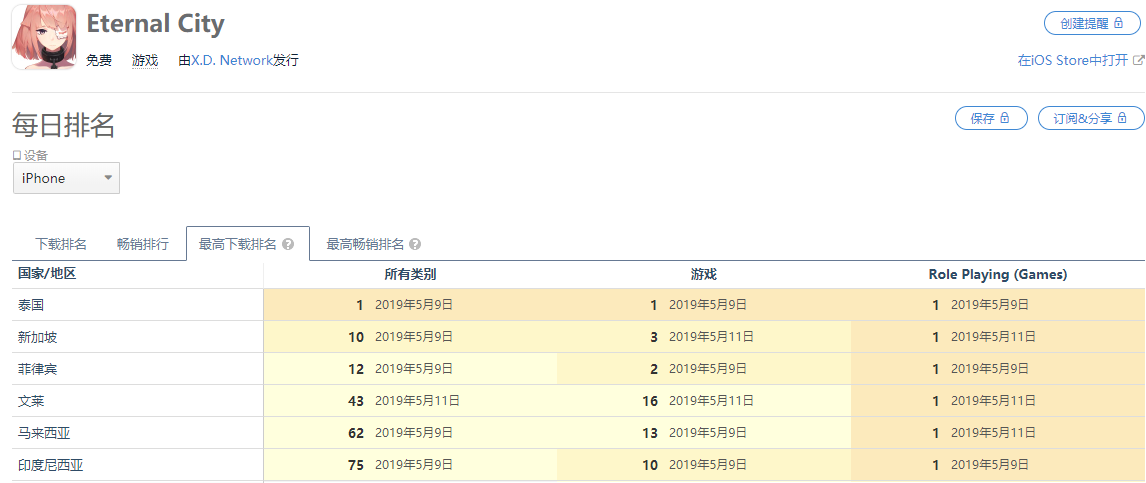 就在上个月,又一款“网易研发、心动发行海外”的产品在东南亚地区成功突围。二次元向的《永远的7日之都》在5月份成功打入了东南亚市场6个主要地区iOS游戏下载榜TOP20之内,并且登上了泰国地区的榜首。这已经是这个组合在过去的一年里第5款成功跑出的作品了。