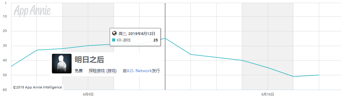 在过去两星期,《明日之后》在韩国Google Play游戏畅销榜的排名一度冲上TOP25