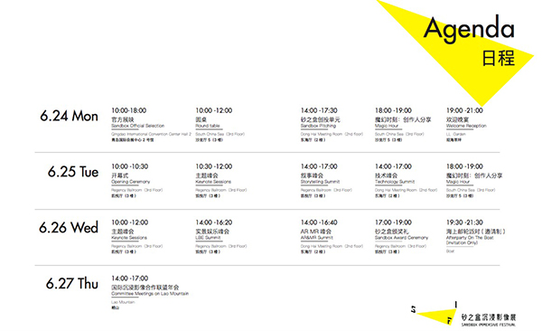 活动邀请了来自全球各大知名国际电影节VR单元策展人、创作者、行业嘉宾,围绕沉浸式影像展开交流和对话。活动涵盖主题峰会、官方展映、艺术展、创投单元以及砂之盒颁奖礼等环节,从沉浸式叙事、虚拟现实、增强现实、交互艺术等相关领域,搭建起中国与全球沉浸媒介创意人合作的桥梁。