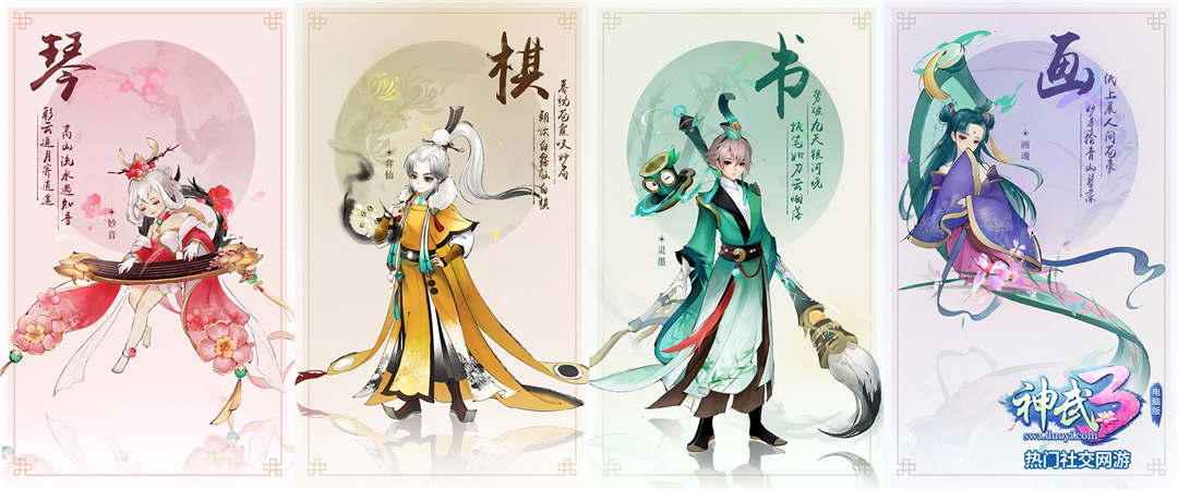 《神武3》电脑版“夏日奇谭”推出三大全新国风萌宠“妙音”、“弈仙”、“灵墨”,和游戏人气宠物“画魂”携手亮相,以拟人化手法精彩呈现传统文化中“琴”、“棋”、“书”、“画”的独特魅力。此外,暑期主题周玩法在6.28同步开启,还有古风Q版头像、四大全新精灵、子女系统优化调整将在后续相继更新。