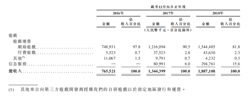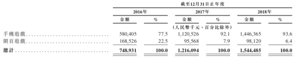 2017年及2018年,《仙境传说》的营收分别为4.68亿及6.27亿,占游戏业务营收37.3%及39.5%;《少女前线》的营收分别为2.56亿及3.00亿,占游戏业务营收的20.5%及18.9%。