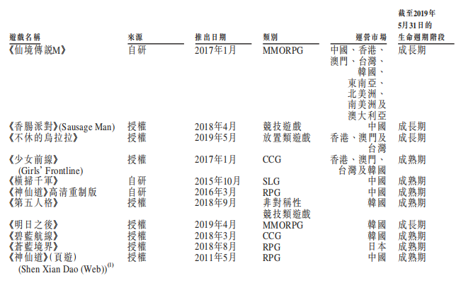 《仙境传说M》是一款以北欧神话为蓝本的MMORPG游戏,2017年、2018年及截止2019年5月31日止五个月,《仙境传说M》的平均月活跃用户分别为170万、270万及560万。