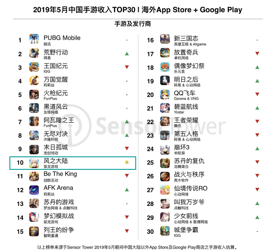 二、紫龙游戏:《梦幻模拟战》登上韩国iOS畅销榜TOP1,《风之大陆》打进出海收入TOP10