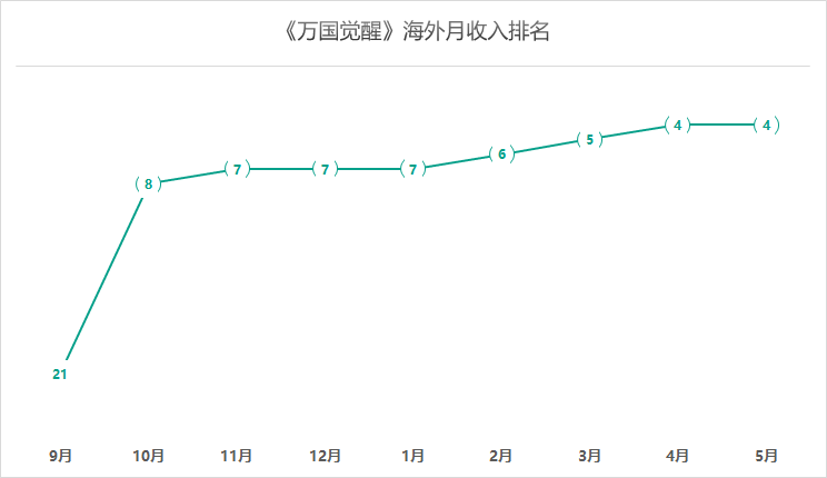 此后《万国觉醒》在长线维持方面也并没有让莉莉丝失望,游戏自去年10月份进入到TOP10之后就一直稳步提升,目前已经跻身TOP4,半年时间过去依然相当坚挺。