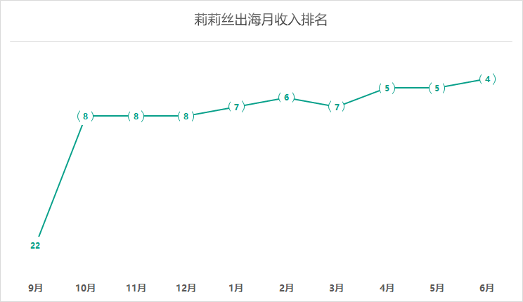 接连的出海告捷为莉莉丝赢下了海外战役,摇身一变成“出海大厂”屹立在榜单前列,出海收入自去年10月份首次拿下TOP8之后便稳步向上爬升,6月份成功拿下第4名,仅次于FunPlus、腾讯和网易。