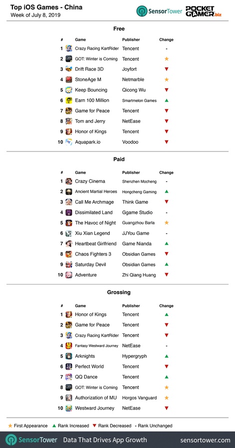 中国榜单(仅iOS):《权力的游戏》拿下畅销第8