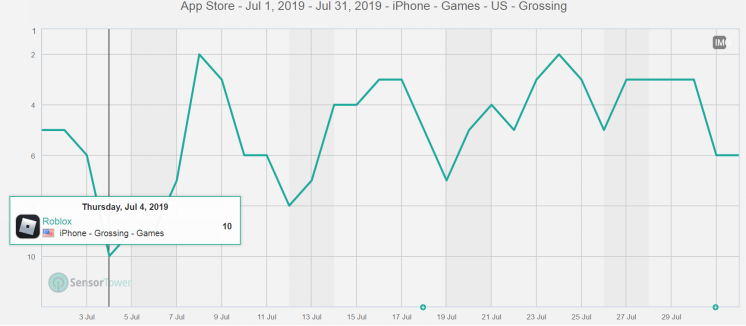 手游方面,《Roblox》移动版亦表现不俗、吸金强劲。根据市场研究机构SensorTower的预估,截至今年6月,《Roblox》手游在全球范围内的累计营收已经突破了7.5亿美元(约合人民币51.7亿元)。而在刚刚过去的7月,《Roblox》手游在美国市场依旧吸金强劲。SensorTower数据显示,7月份,该作一直稳居美国iPhone畅销前十。