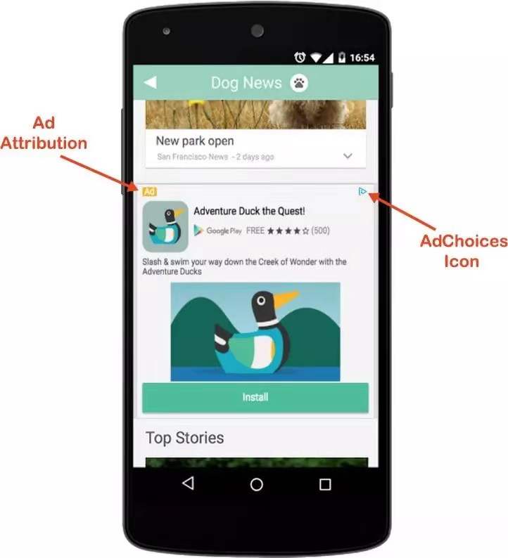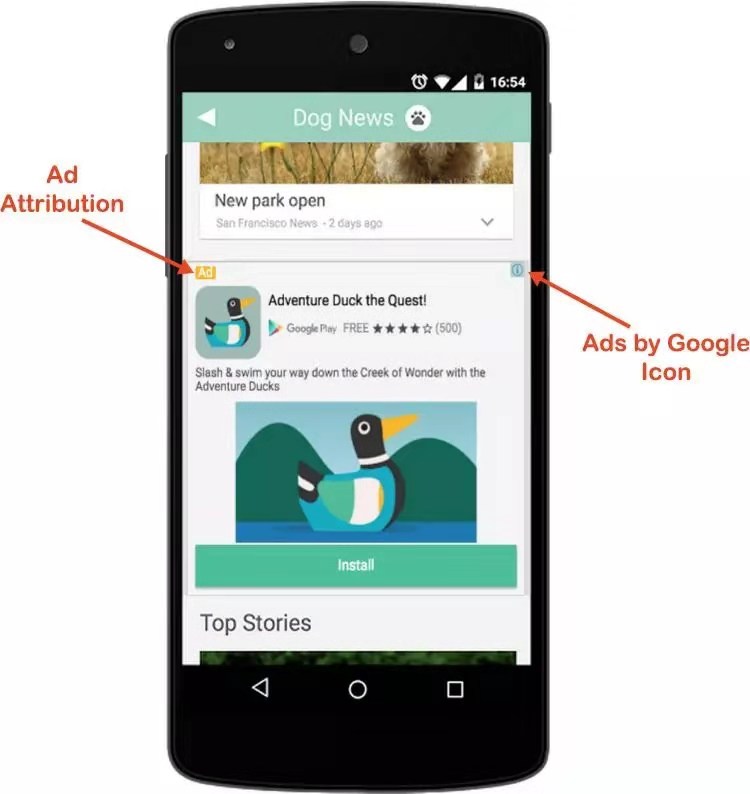 广告标示和广告选择(或“Google 提供的广告”,如果适用)图标必须将你的原生广告清楚地标为广告,以免用户将其误认为内容。广告标示必须手动添加。在更改广告标示的默认样式时需要遵循以下要求: