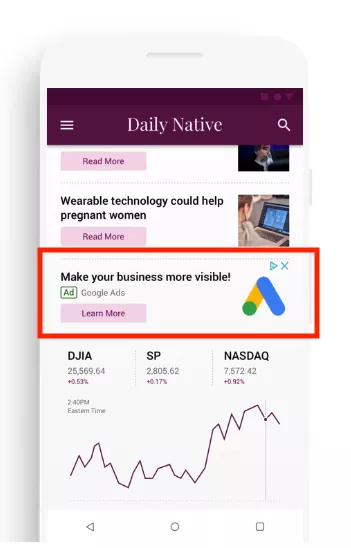 通过使用原生广告样式,你可以展示来自成千上万不同广告客户的原生广告。其收入在 AdMob 4 种广告形式当中,通常情况下原生视频广告也会比普通横幅更高。