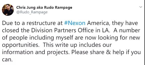 Nexon America的产品经理Chris Jung在Twitter中表示:“由于Nexon America的公司重组,他们已经决定将关闭美国合作办公室,很多员工包括我都在寻找新的机会。”本次的工作室关闭是在NexonM工作室宣布关闭之后紧接发生的,时间间隔还不到一个月。NexonM是位于美国加利福尼亚洲的一间移动端游戏工作室,距离它的营业已经过去了5年。