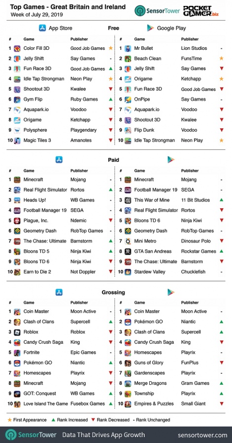 英国及爱尔兰:《部落冲突》双榜吸金强劲
