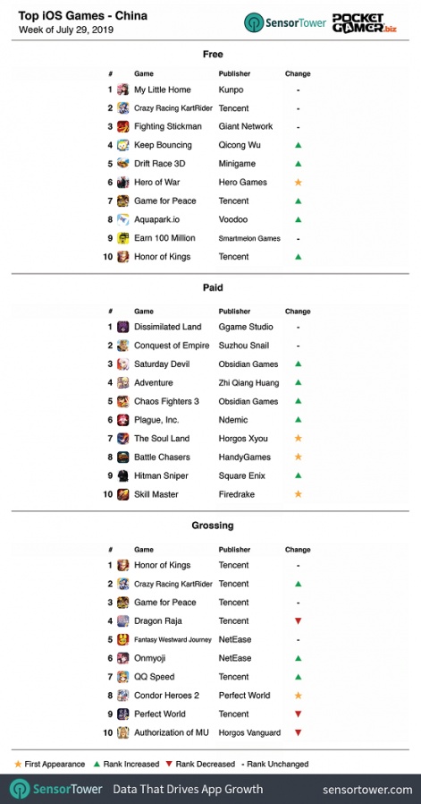 在本期的免费榜上,蓝飞互娱出品的《我的小家》、腾讯《跑跑卡丁车》以及巨人网络出品的《激斗火柴人》继续稳居国内iOS免费榜前三。