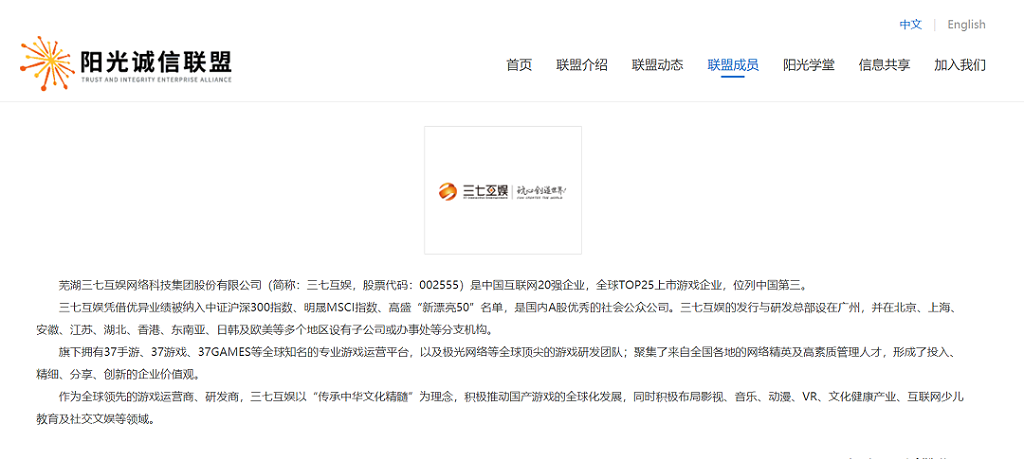 此次三七互娱加入两大联盟,是其在完善企业诚信体系建设、提高企业反舞弊能力、深入精细化管理、加强企业风险防范及社会责任建设等方面迈出的重要一步。未来,三七互娱也将与阿里巴巴、万科、腾讯、京东等联盟企业携手,共创人人廉洁、诚信从业的正能量正循环。