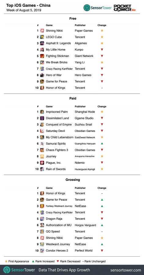此外,网易《梦幻西游》(第3)、Horgos Vanguard旗下的奇迹MU正版手游《精灵盛典》(第6)、网易《大话西游》(第9)以及完美世界《神雕侠侣2》(第10)均成功入围国区iOS畅销前十。