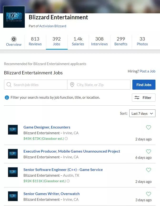 暴雪近日发布了多个岗位的招聘需求,包括《守望先锋》高级游戏编剧、负责游戏服务的高级软件工程师(C++)、负责遭遇战设计的设计师,以及一款未公布手游项目的执行制作人。