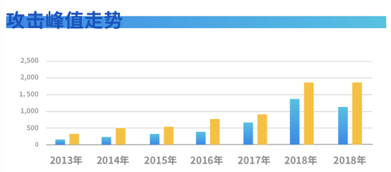 2013-2018年2018-2019年DDoS攻击峰值走势