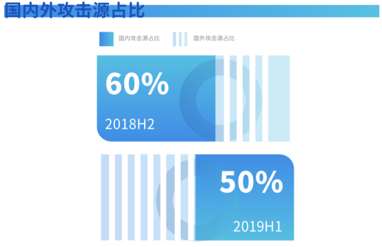 2019年上半年DDoS攻击国内外攻击源占比