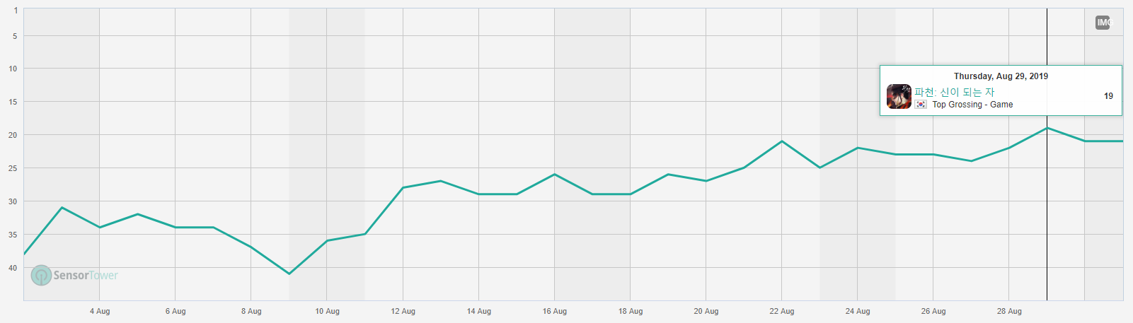 4399出海,继早前的《천애신서》之后,又一款4399旗下的MMO打入了韩国畅销榜头部。在过去的30天,游戏在韩国畅销榜的排名基本稳定在TOP30附近。