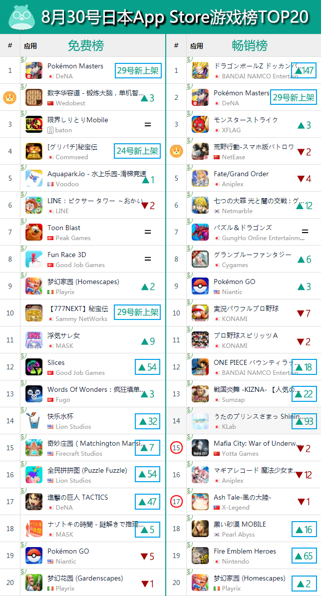 注:下列图表中红圈标示均为中国出海游戏,篮框标示均为本期新上榜游戏。
