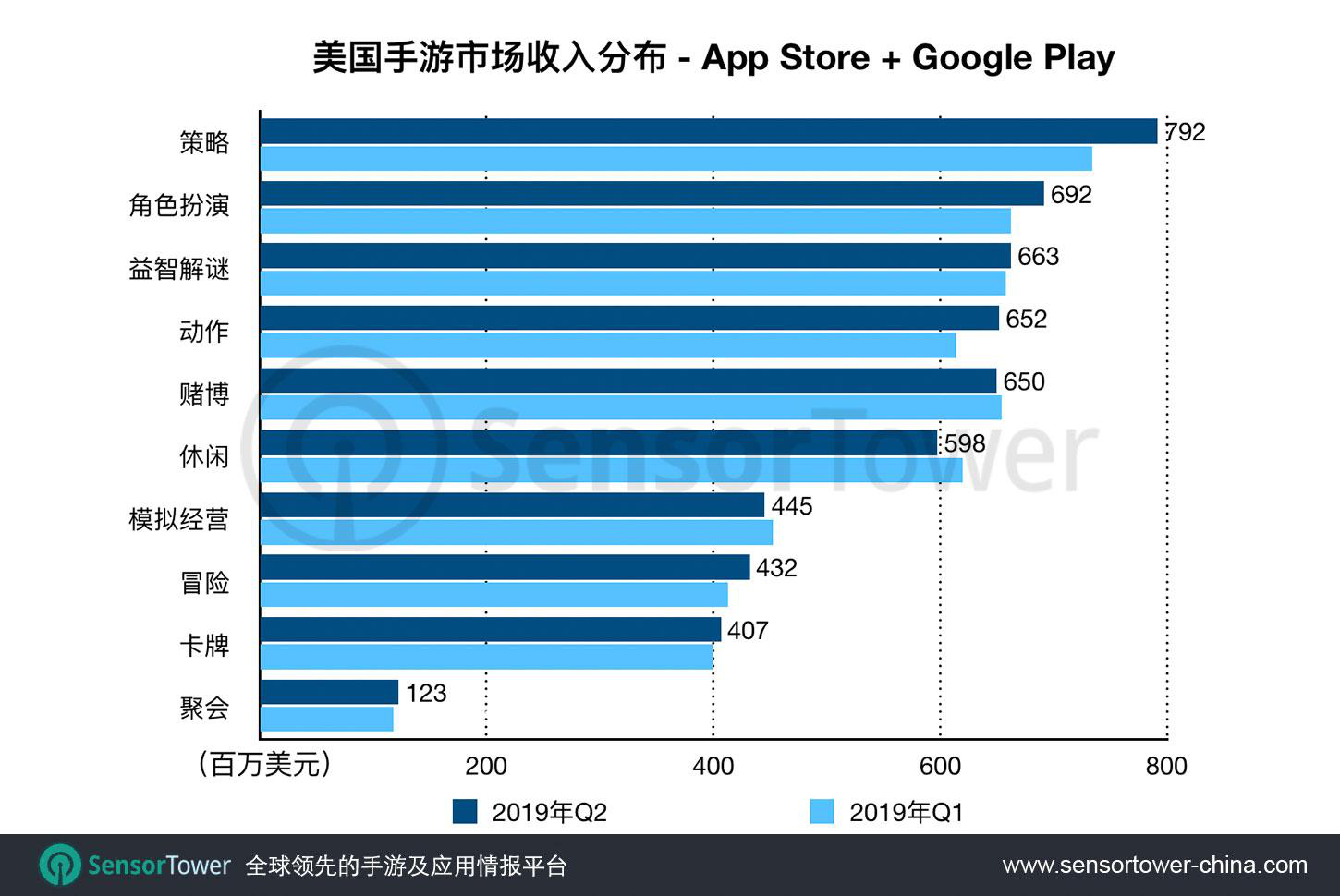 今天(9月2日),SensorTower发布了2019年Q2美国手游市场的大盘数据及国产游戏出海美国的相关数据。