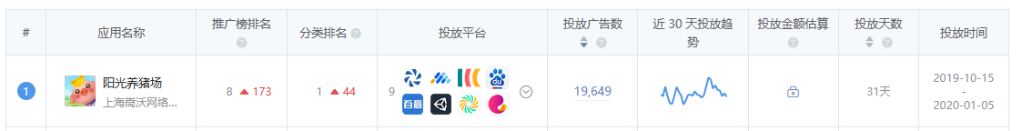 (以《阳光养猪场》为例,近20000的投放广告数让它具备最高的曝光量)