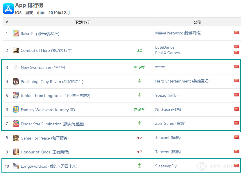临近年关,国内手游市场近段时间相当活跃,12月的iOS中国游戏收入TOP10上出现了4款新上榜产品,这在此前几个月的榜单中是比较少见的。