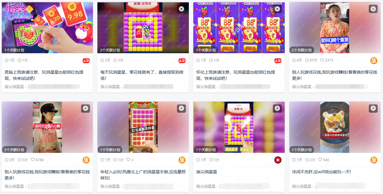 有趣的是,手游那点事从DataEye—ADX平台查询到,《指尖消星星》在买量素材方面,主打“玩游戏赚钱”这一个关注点,再结合《阳光养猪场》这类游戏的走红情况来看,这种“玩游戏赚钱”的噱头成为了买量市场的一个热门方向。
