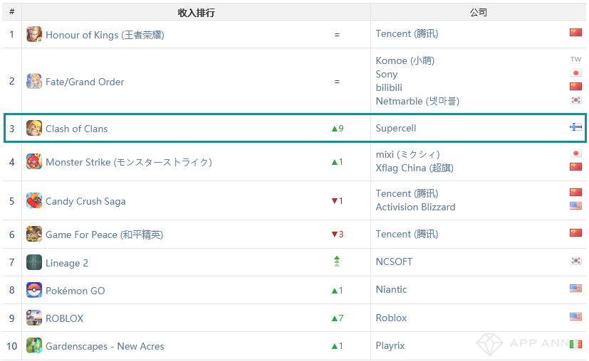 iOS & Google Play全球榜单方面,下载榜依旧是超休闲品类的天下,上榜产品里有7款为超休闲,SayGames新游《Turbo Stars》打入TOP10;收入榜上,Supercell则是12月的最大赢家,《部落冲突》排名蹿升拿下TOP3,由此公司排名上升5位重回TOP3行列,据SensorTower的数据,2019年《部落冲突》的总收入较2018年5.72亿美元增长了27%,重现辉煌。