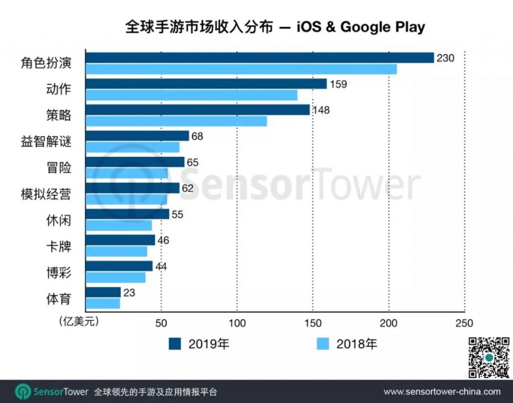 其中,来自iOS的收入近370亿美元,占全球手游收入近60%,Google Play贡献的收入为247亿美元,占比为40%。