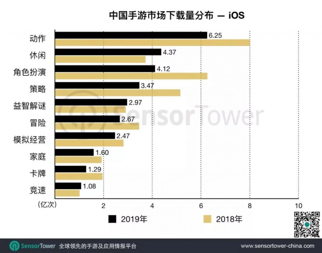 不过,在增速方面,休闲游戏和益智解谜领先于其它品类,分别达到22%和26%,动作游戏为7.7%。