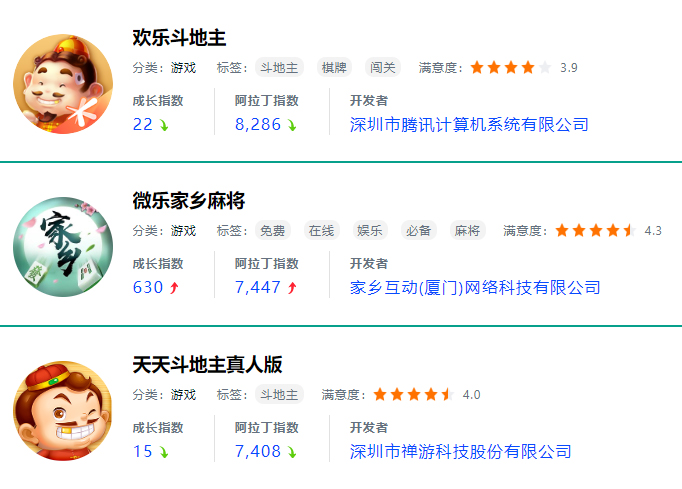 与此同时,棋牌市场在春节期间的涨幅也比较明显,但基本上都是“巨头得益”,几款打入头部的棋牌类小游戏诸如《欢乐斗地主》、《天天斗地主真人版》、《微乐家乡麻将》等...这些“棋牌爆款”的背后基本就是家乡互动、禅游科技以及腾讯等一直浸淫在棋牌市场的巨头,尽管春节期间棋牌类小游戏的市场迎来一波不小的增幅,但基本上都被这些巨头收入囊中。
