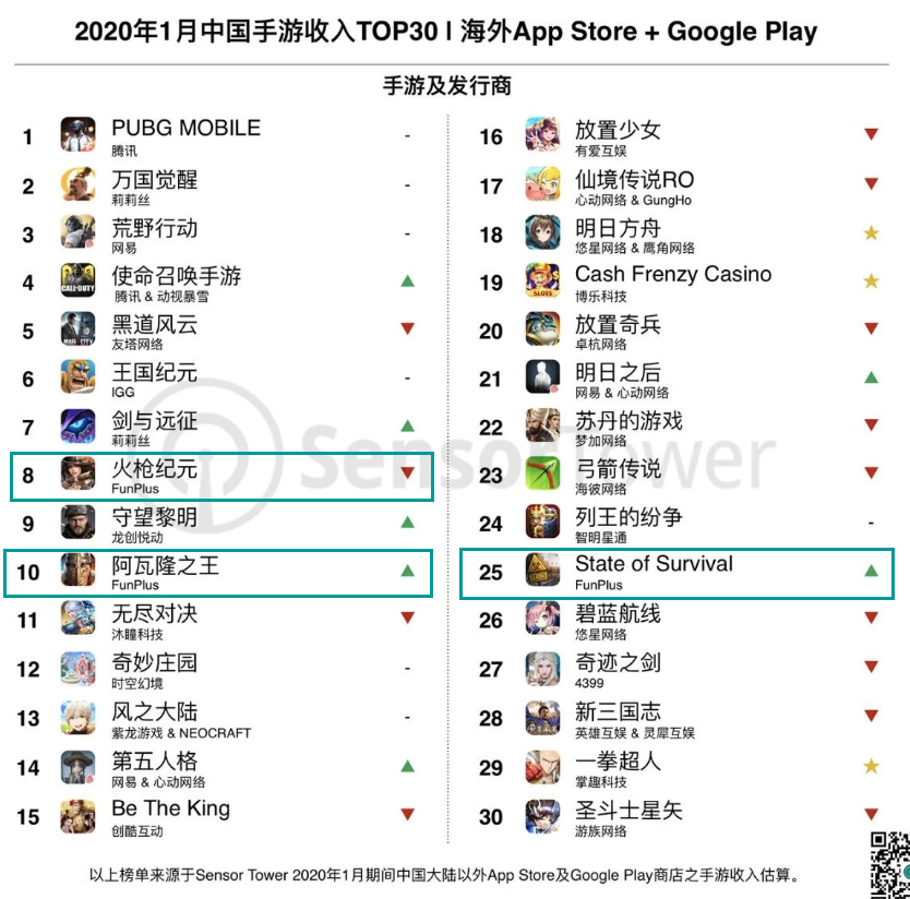三、《State of Survival》拿下出海收入第25,FunPlus共3款SLG稳居TOP30