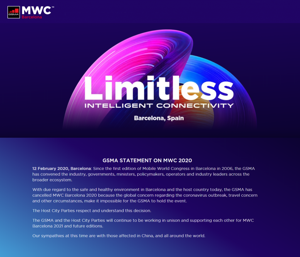 而早前的巴塞罗那世界移动通信大会,则完全因为疫情的影响,在2月12日宣布完全取消,GSMA全球移动通信系统协会在宣布此消息时解释说:“考虑到当前巴塞罗那东道国的安全与健康环境,我们取消了MWC2020,全球范围内对病毒爆发,差旅和其他情况的担忧使我们无法如期举办。”