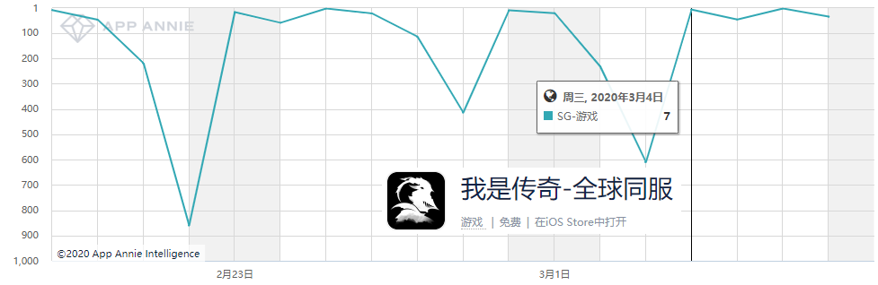 尽管《我是传奇》本期成功打入了新加坡免费榜TOP2,但翻查游戏登陆新加坡市场后的排名记录不难发现:游戏在免费榜的排名走势“怪异”,但是却屡次能排名下滑后,重新打入免费榜的头部。