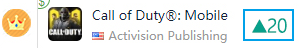 在免费榜方面,上榜的还是上期的两款产品:由朝夕光年发行的《我功夫特牛》继续稳守日本免费榜TOP2;《使命召唤手游》则是在本期打入了日本免费榜TOP14。