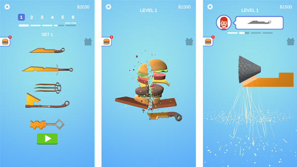 继早前的《Rusty Blower 3D》之后,掌游天下在本期再度有打入了海外市场免费榜头部。值得一体的是,游戏的玩法也从“清除铁锈”进化成“打磨刀具”,然后玩家还可以在各种食材以及材料身上试验自己打磨刀具的锋利程度。