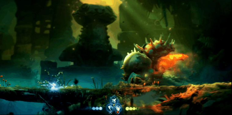 攻击指令的变化也带来了游戏节奏的变化,ori的战斗从“在平台间立回寻找敌人的攻击间隙使用光束射击”——转变为——“主动攻击并在敌人攻击时规避随后迅速接战”,《萤火意志》的战斗更快速、更直接,换言之也更“爽”,加上传统平台动作游戏惯有的“dash”、“多端跳跃”和《ori》系列特色的反射机制,《萤火意志》已经是一款游玩体验畅快的平台动作游戏。