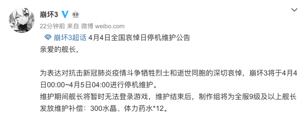 除此之外,多家游戏公司及平台也做出了不同时长的停服决定,以表哀悼。