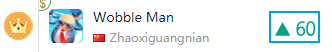 继日本市场之后,字节跳动旗下产品在本期成功打入了美国市场免费榜头部。本次打入美国市场免费榜头部的《Wobble Man》(是特工就上一百层)在玩法上仍然没有脱离超休闲游戏“操作简单,反馈即时”的特点。更值得一提的是,这和早前在日本市场大火的《我功夫特牛》同样都是经过国内市场验证的产品,并把它们成功“复制”到海外成熟市场。