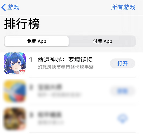 (《命运神界:梦境链接》上线后iOS游戏榜单排名变化)