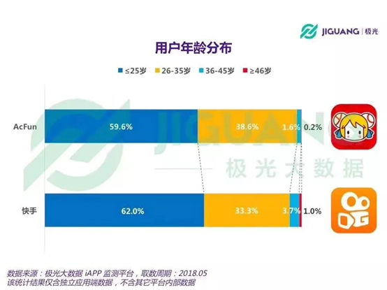 根据快手收购AcFun时,极光大数据披露的数据来看,在用户画像上AcFun作为国内最老牌的弹幕视频网站,在年轻人为主的二次元群体中扩展的潜力;而快手也坐拥数量相当可观的年轻用户群;