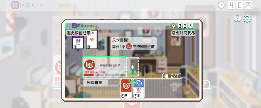 (异常情绪会组合成持续现象,需要及时解决,但解决的活动也会消耗时间,如果不做好规划,很容易Game Over)
