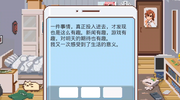 章节式的玩法区分,穿插的欢快小游戏,都是《如三》将这个从悲到喜,再落回悲伤结局的曲折故事娓娓道来的手段,在阶段性的流程中间,游戏会以电子日记的形式,记录主角当前的感受。